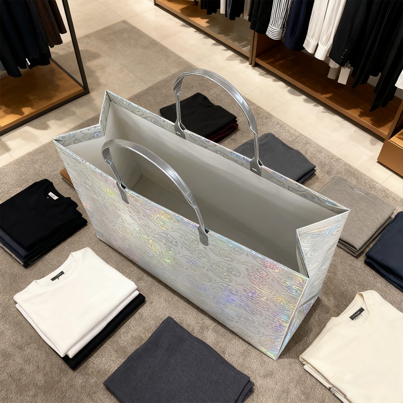 Superficie scintillante: la pellicola glitter è incorporata con particelle glitter fini e di alta qualità che catturano e riflettono la luce da ogni angolazione, creando uno scintillio accattivante e multidimensionale. Questo attira immediatamente l'attenzione e genera un senso di eccitazione e celebrazione. Texture lussuosa: a differenza dei glitter scrostati, la nostra pellicola laminata mantiene permanentemente la sua lucentezza sotto uno strato protettivo liscio. Ciò garantisce un'esperienza utente pulita e ordinata fornendo allo stesso tempo una sensazione tattile confortevole. Design riutilizzabile: la combinazione di un robusto nucleo di carta e una resistente superficie laminata rende questa borsa costruita per durare. La sua capacità di mantenere la sua brillantezza nel tempo ne incoraggia l'uso ripetuto, trasformando i tuoi clienti in ambasciatori ambulanti del marchio anche molto tempo dopo l'acquisto iniziale. Stampa squisita: il nostro team di progettazione può progettare modelli in base alle vostre esigenze e mostrarli sul prodotto con le nostre sofisticate attrezzature e tecnologia avanzata. Il tuo logo e il tuo design possono essere applicati con colori chiari e vivaci, creando un bellissimo contrasto con uno sfondo scintillante per ottenere la massima consapevolezza del marchio. Personalizzazione personalizzata: i clienti possono cambiare colori, sostituire le maniglie, aggiungere modelli specifici e personalizzare le dimensioni in base alle loro esigenze. Fornisci una straordinaria flessibilità per abbinare i colori specifici del tuo marchio e i requisiti funzionali per diversi eventi.